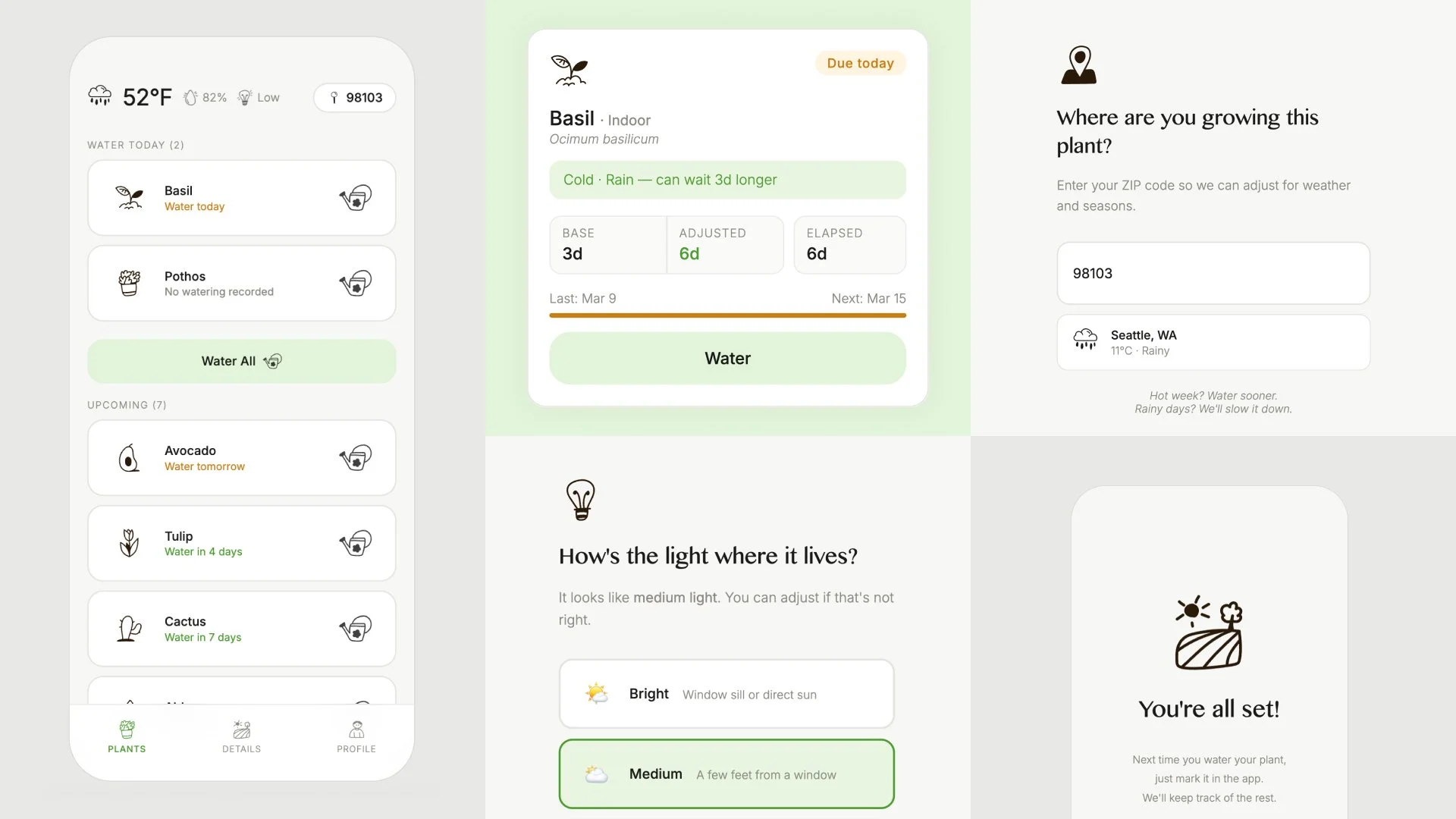 A vibe-coded side project exploring plant care and weather-aware watering.